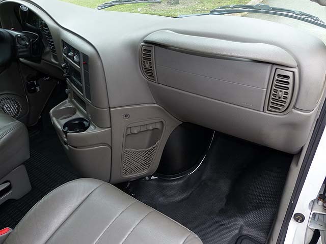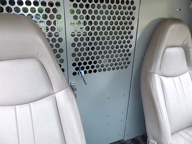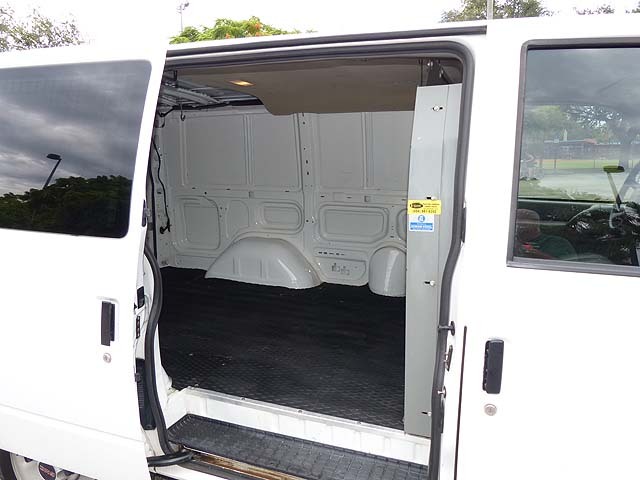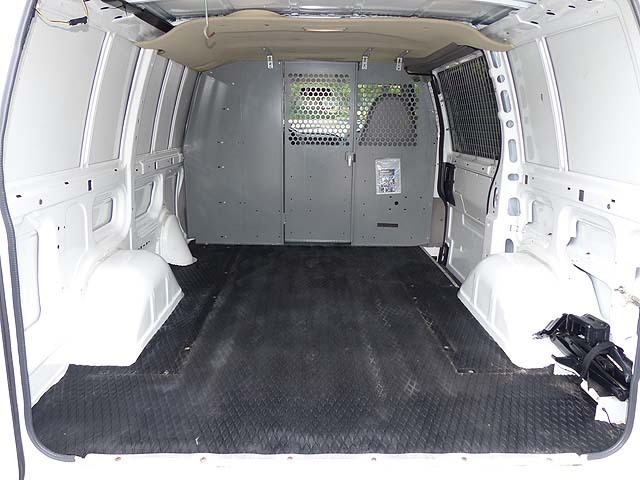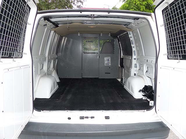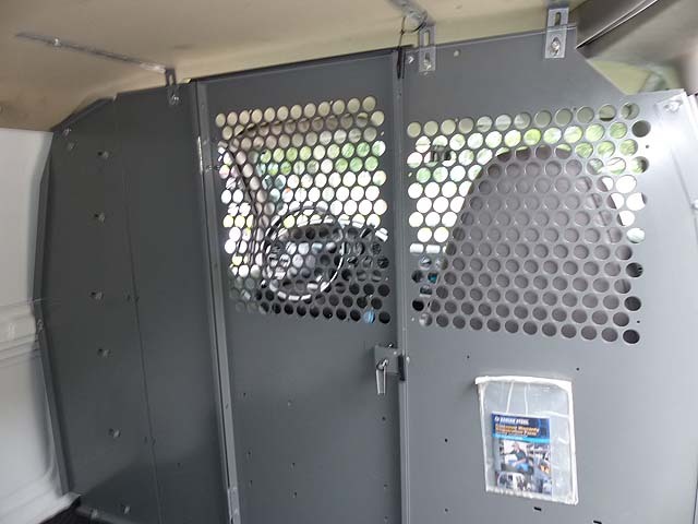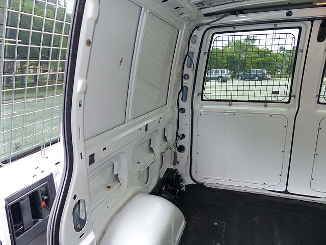 This van features barn doors at the rear of the van, plus a sliding side door. There is a heavy-duty, non-slip vinyl floor in the cargo area and the cab. There is also a metal partition with a locking door from Adrian Steel.(2 keys are included). Up front, the driver has ice cold factory A/C and an AM/FM stereo radio. There are power locks and a remote entry key fob with a security system.