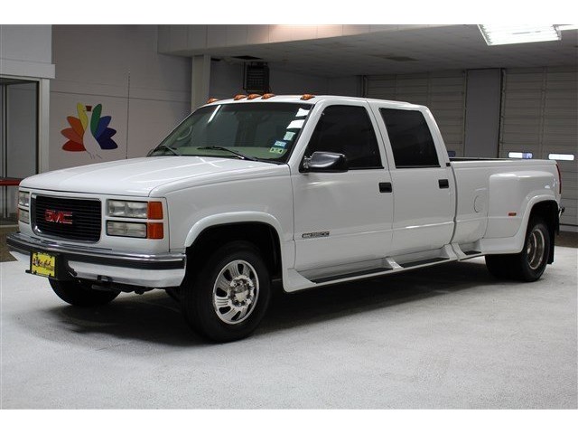 How would you like cruising away in this superb 1997 GMC C/K 3500 at a price like this? It's the combination of advanced design and precision engineering that gives the GMC C/K 3500 the pinned-to-your-seat acceleration. This truck is nicely equipped with features such as Appearance Package, 4 Speakers, ABS brakes, AM/FM radio, Auto-dimming Rear-View mirror, Bodyside moldings, Bumpers: chrome, Driver door bin, Front anti-roll bar, Front Center Armrest w/Storage, Front reading lights, Front wheel independent suspension, Leather steering wheel, Passenger door bin, Passenger vanity mirror, Power Door Locks, Power door mirrors, Power steering, Power windows, Rear reading lights, Rear step bumper, Speed-sensing steering, Sport steering wheel, Tachometer, Variably intermittent wipers, Vinyl Seat Trim, and Voltmeter.