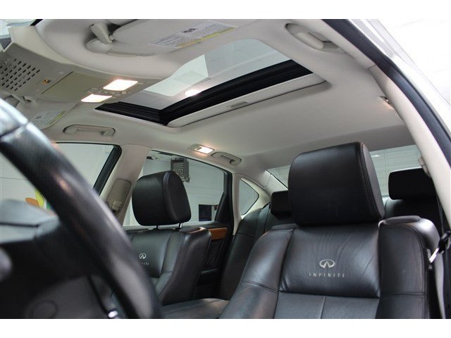 Be the talk of the town when you roll down the street in this charming 2006 Infiniti M35. J.D. Power and Associates gave the 2006 M35 5 out of 5 Power Circles for Overall Initial Quality Mechanical. It is nicely equipped with features such as Journey Package (Adaptive Front Lighting System, Advanced Rear-View Monitor, Climate-Controlled Front Seats, High-Intensity Discharge Xenon Low-Beam Headlights, HomeLink Universal Transceiver, and Mirror Mounted Compass), AWD, 4-Wheel Disc Brakes, 6 Speakers, ABS brakes, Air Conditioning, Alloy wheels, AM/FM In-Dash 6-Disc CD Auto-Changer, AM/FM radio, Anti-whiplash front head restraints, Auto tilt-away steering wheel, Auto-dimming door mirrors, Auto-dimming Rear-View mirror, Automatic temperature control, Bodyside moldings, Brake assist, Bumpers: body-color, CD player, Delay-off headlights, Driver door bin, Driver vanity mirror, Dual front impact airbags, Dual front side impact airbags, Electronic Stability Control, Four wheel independent suspension, Front anti-roll bar, Front Bucket Seats, Front Center Armrest w/Storage, Front Cupholders, Front dual zone A/C, Front fog lights, Front reading lights, Fully automatic headlights, Genuine wood console insert, Genuine wood dashboard insert, Genuine wood door panel insert, Heated door mirrors, Illuminated entry, Leather Seat Trim, Leather Shift Knob, Leather steering wheel, Low tire pressure warning, Memory seat, MP3 decoder, Occupant sensing airbag, Outside temperature display, Overhead airbag, Overhead console, Panic alarm, Passenger door bin, Passenger vanity mirror, Power door mirrors, Power driver seat, Power moonroof, Power passenger seat, Power steering, Power trunk closing assist, Power windows, Radio data system, Rear anti-roll bar, Rear reading lights, Rear seat center armrest, Rear window defroster, Remote keyless entry, Security system, Speed control, Speed-sensing steering, Speed-Sensitive Wipers, Steering wheel memory, Steering wheel mounted audio controls, Tachometer, Telescoping steering wheel, Tilt steering wheel, Traction control, Trip computer, Turn signal indicator mirrors, Variably intermittent wipers, and Wireless connectivity. Don't be surprised when you take this wonderful Infiniti M35 down the road and find yourself enamored with its handling and falling in love with REAL driving all over again.