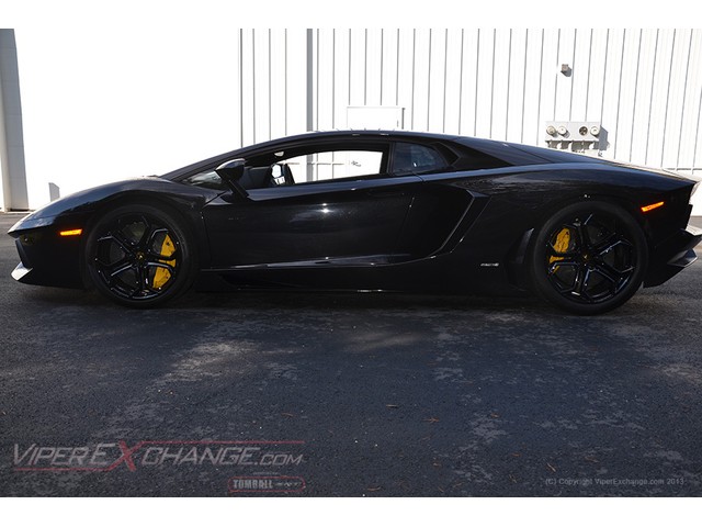 2013 Lamborghini Aventador LP-700-4 Coupe ZHWUC1ZDIDLA01368 -Nero Ade (Black) / Black Interior with Giallo Taurus (Yellow) Stitching,  Extended 5 Year Factory Bumper to Bumper Warranty transferrable, Navigation, Rims, Installed the Lamborghini Exhaust for a better rumble, Aventador Shiny Black, Carbon Ceramic Brake, Yellow Calipers, Lifting System with Yellow Rear Suspension Springs, Steering in Smooth Leather Multifunction, Lamborghini Sound System, Park Assist (Sensors with Rear View Camera), Roof in Body Color, T-Engine Cover In Carbon, Transparent engine Cover, Transparent Engine Bonnet. This Aventador has a clear bra covering the entire front end of the car. This is highly desirable color and for more information please email bfkatz@bjmotors.biz or call our toll free number 1-800- 270-1608. Come visit our facility in Houston, Texas.