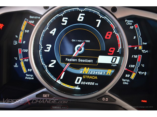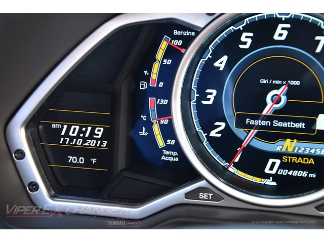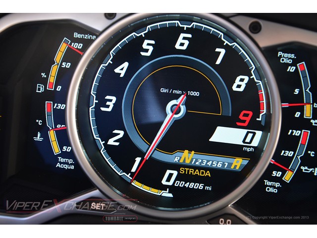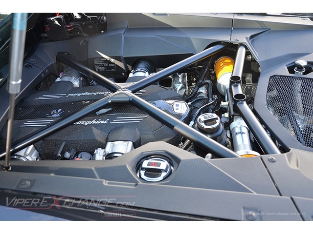 The Lamborghini Aventador LP700-4 is powered by an all-new 6.5L V12. Power is rated at approximately 691hp and 509 lb-ft of torque. It is 18 percent more powerful than the Murcielago, while also emitting 20 percent fewer emissions. As for the transmission, Lamborghini makes use of its new ISR (Independent Shift Rod) 7-speed transmission – a completely new, in-house design unlike anything else. With five gear settings, (Auto Strada, Auto Sport, Strada, Sport, and Corsa) the innovative transmission is be able to deliver shift times of just 50 milliseconds in Corsa Mode – which is almost as quick as a Formula 1 car. The Aventador remains an all-wheel-drive car utilizing a Haldex AWD electronic control system. Other technology highlights includes a carbon fiber monocoque, carbon ceramic braking system, and a pushrod suspension front and rear. This is a complete redesign from the outgoing Murcielago. In fact, not one part has transferred over to the new car. Lamborghini lists the performance stats as follows: 0-100 km/h (0-62 mph) in 2.9 seconds and Top Speed of 217 mph.