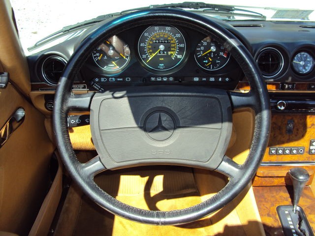 • The cosmetic condition of this car is very good!  Inside this 560SL looks very good and outside she looks great!  There is hardly even a chip in the beautiful brilliant white paint, the chrome looks great, the alloy wheels look like new, the hardtop looks great, the interior looks very good with nice wood trim, nice door panels, nice dash, nice carpet, nice seats, and  matching floor mats!
