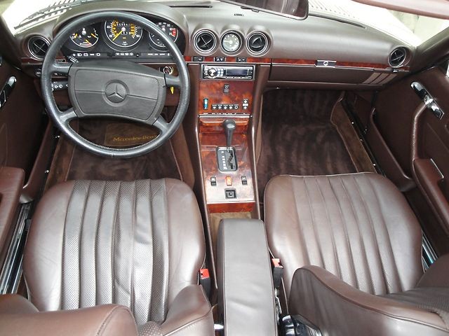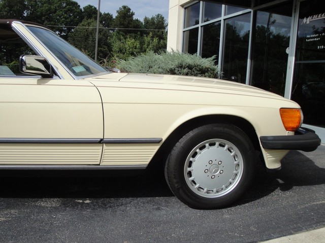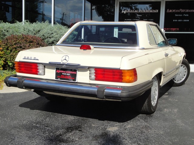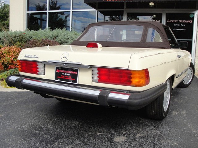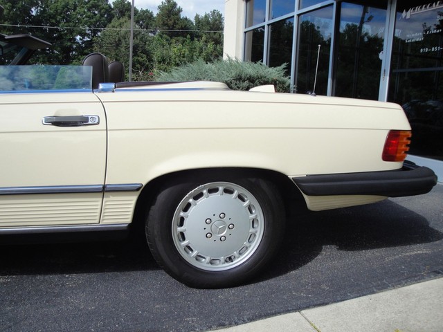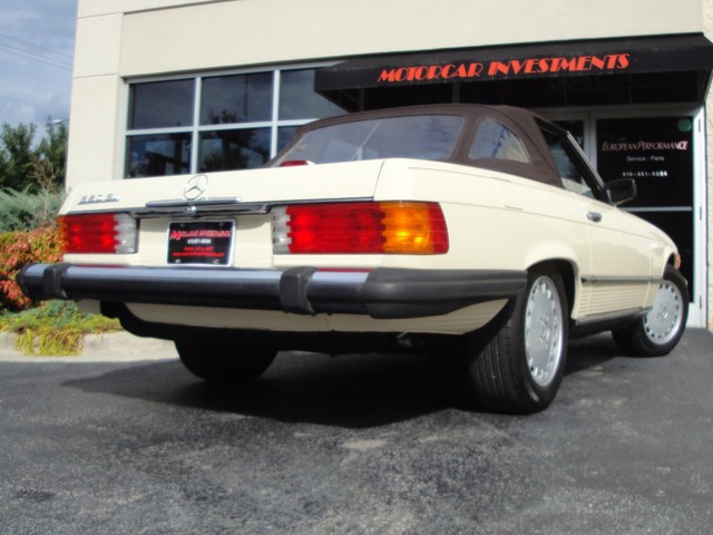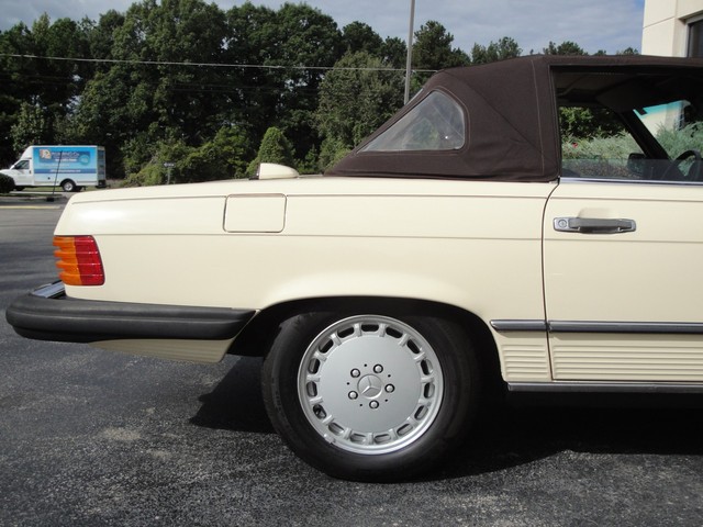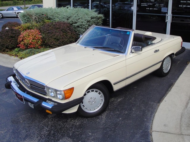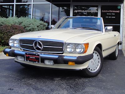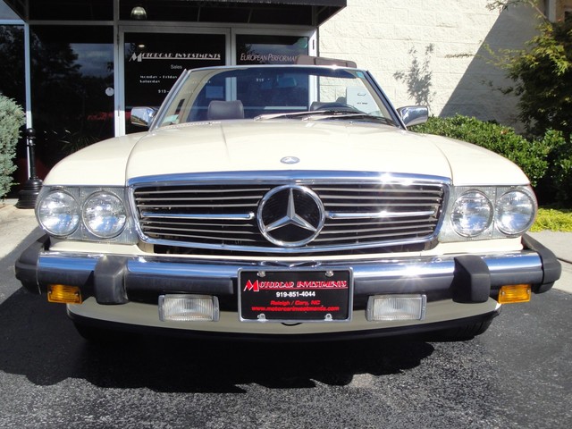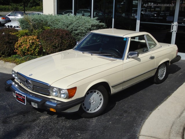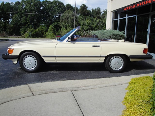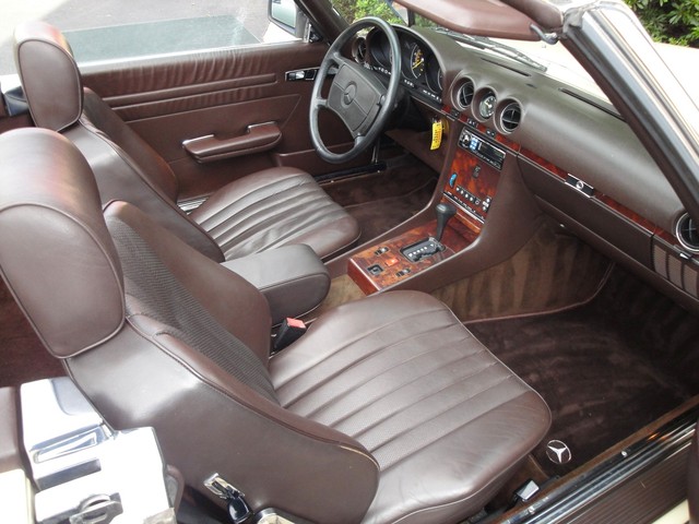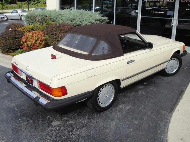 A beautiful 560 SL ready to cruise the open road. A fantastic Light Ivory (Factory color name) exterior looks beautiful over the dark brown leather interior. This is truly becoming a collectible car as collectors and enthusiasts both are continually snatching up the good ones. We have all documents, including original window sticker and all books, keys, and records. This car is 100% original. All original paint, interior, and all mechanicals. Always garaged. Both tops, of course, come with the car. This has a dark brown soft top that is in great shape. The 560 SL cars were only made 86-89 and they are very special and highly collectible. Get this one before it gets gone!