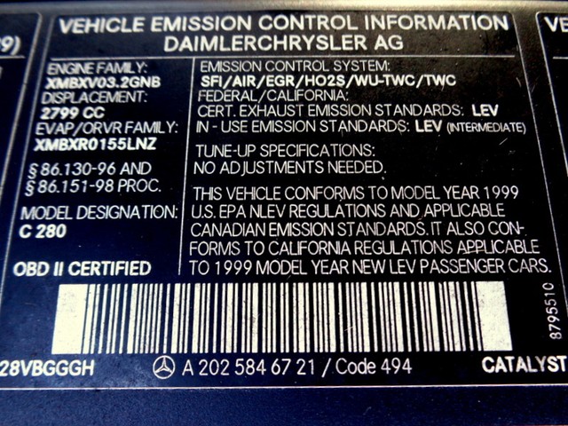 Here we have at "No Reserve" auction, is this low original mileage, good shape mechanically, smooth running and driving, inspected and serviced, 1999 Mercedes Benz C 280 sport sedan. Good, solid drive, she runs smooth and all mechanical and power items appear to be in good working condition at this time. Inside, the "Gray", upholstery looks very good for its age, no rips or tears looks real nice. No pixels are out or missing on the displays and no dash cracks were found. The "Brilliant Silver" metallic exterior looks nice and clean, no noticeable dings/dents/scratches. She has had some previous paint work but done professionally. She features, 16" alloy wheels, 2.8L 6-cylinder engine, cruise control, homelink, 5-speed automatic transmission, dimming rear view mirror, external temperature display, power front seats, power mirrors, windows, locks, telescopic leather steering wheel, spare tire, jack, front and side air bags, 4-wheel ABS disc brakes, rear defogger, tachometer, interior trunk release, remote rear headrest release, ASR, keyless entry, power sunroof in excellent working condition, Bose audio, floor mats and more! The mechanical condition of this C 280 sport is really good, the engine runs strong with no issues and the automatic transmission shifts smooth, no hard shifts. The air conditioning is cold. No reserve, high bidder wins it! Purchasing this, pre-owned, vehicle makes good financial sense. You're able to avoid the steep depreciation rates that occur with brand new vehicles. This essentially gives you the advantage of getting a pre-owned vehicle for less money than when it was new. All of our vehicles are sold with titles that are free and clear of any and all liens. You will receive a clean title. Please note that we use our pictures as a physical description as well so please look at them closely. Don't assume anything. A pre-owned vehicle will have some usual wear. Pre-sale inspections are welcomed and encouraged! We are selling this vehicle "No Reserve". Sold "As Is"! Buyer is responsible for any shipping charges. Please have your finances in order and ask all questions before placing your bid. If you have any questions about any of my other auctions please feel free to contact me via e-mail. Thank you for your interest and I look forward to hearing from you.