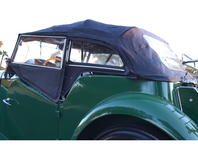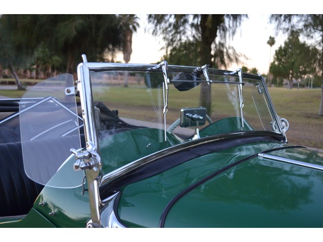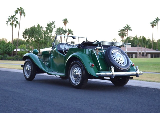 European Motor Studio is proud to offer this exceptionally clean 1953 MG TD Roadster in classic and very traditional British Racing Green over Black interior. 1953 marked the very last year of production of the iconic TD series making this one of the best examples of the TD. Beautiful British Racing Green paint is draped over this laser straight TD, the panel gaps are excellent, and the body is completely rust and rot free. The paint finish is beautiful and has very few imperfections. There are a couple tiny rock chips in the front fenders and a small scratch from the softop/windows. The interior is finished in soft plush black vinyl with black carpeting. Everything on the interior looks to be original and has held up exceptionally well. The driver portion of the seat bench has one seam that has a tear in it but has been patched up. The TD’s softop is still in outstanding condition with all of its original window attachments present. All of the materials are in great shape and free from any tears or rips. There is an extra trim lining on the outside of either side of the soft top, the right lower trim lining has separated which is pictured. There are no holes when the soft top is fully erect. The bright work and trim are all in beautiful shape, The chrome rear luggage rack is original and in beautiful condition. The dashboard is in excellent condition, with its original black vinyl finish still intact and free from any cracks or tears. The paint finish on the dashboard right around the horn button and ignition switch does show some fade. The glass is all clear and free from any rock chips or pitting. All of the electrical equipment on the car is in perfect working order, the windshield wipers are working as designed, the headlights, taillights and dash lights are all working as designed. The horn works with its original black button on the center dashboard and the heater still blows out heat. All of the mechanics on the car are working beautifully, the carbs have been properly tuned to factory specifications, and the engine starts right up and idles very smoothly. This TD has just had a full tuned up and service, the carbs have been rebuilt and the engine has had a full fluid change and tune up. The engine compartment is nicely detailed and very tidy; the undercarriage of the car is extremely clean and very well presented. This TD runs and drives beautifully; it starts right up and idles so smoothly. The clutch feels solid and tight and the gear changes are smooth and direct. There is no slipping of the clutch and no grinding of the gears. The steering feels excellent, no drifting or vibrating, the brakes feels excellent and free from any fade or pulsating. The tires are near new as are the brakes. The suspension is very tight and precise; there are no squeaks or rattles coming from the car. If you are looking for one of Britains best and most famous sports cars of all time, look no further. These have become a very highly and desirable collectable that is extremely easy and user friendly to work on and delivers an enormous amount of driving pleasure. The values of these have slowly started to rise which makes these cars a solid investment.