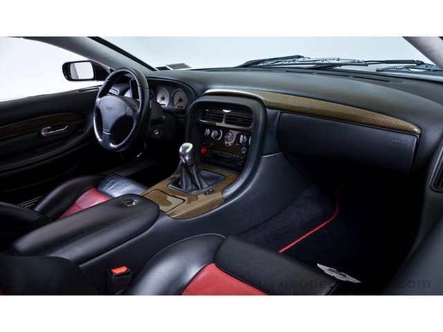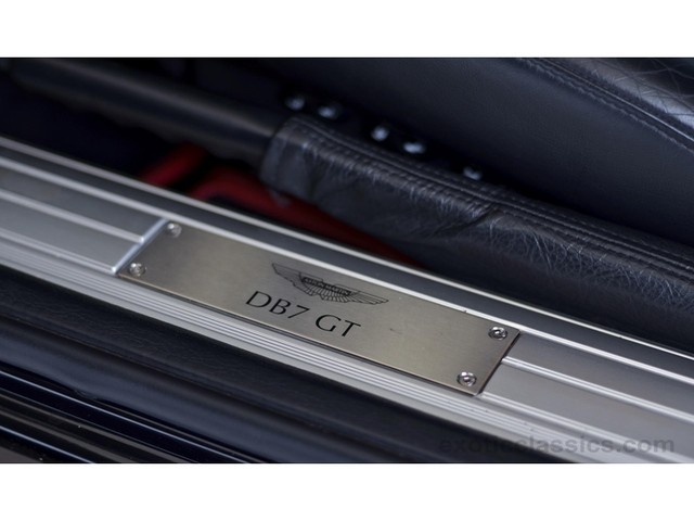Exotic Classics is proud to offer this Aston Martin 2003 GT. Black with Two-Tone Black and Red Interior with only 8,800 pampered miles. Recognized as one of the world's most beautiful cars, the DB7 GT has received subtle but effective changes to complement the elegant, yet classic body design that since 1993 has epitomized the pedigree, heritage and tradition of Aston Martin. Special attention has been paid to the aerodynamic balance for high speed stability with the adoption of additional sweeps for the under tray, wheel arch liner extensions and a revised bootlid which emphasizes the new look. These additions have helped to reduce lift by almost 50%. Under bonnet air-flow management is assisted by the addition of two distinctive bonnet vents, which also help dissipate heat.