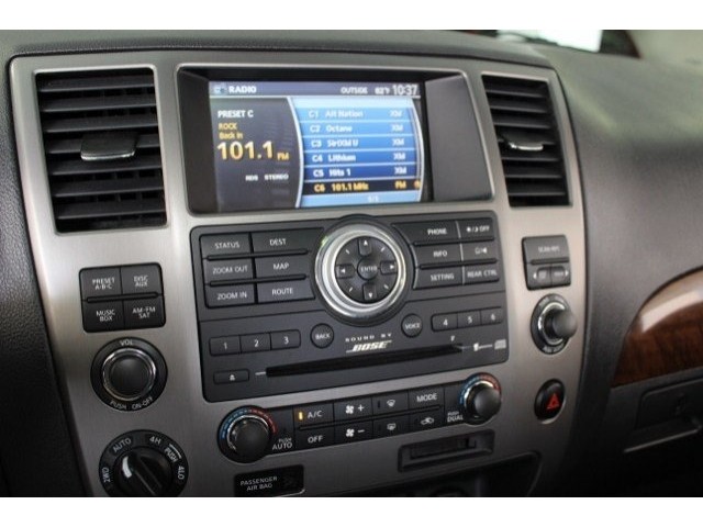 Captain Seat Package, ABS brakes, Alloy wheels, Electronic Stability Control, Entertainment system, Front dual zone A/C, Heated door mirrors, Heated Front Bucket Seats, Heated front seats, Illuminated entry, Low tire pressure warning, NAVIGATION, Navigation System, Power moonroof, Remote keyless entry, and Traction control. This 2010 Armada is for Nissan nuts who are searching for an outstanding, low-mileage SUV. It will save you money by keeping you on the road and out of the mechanic's garage.