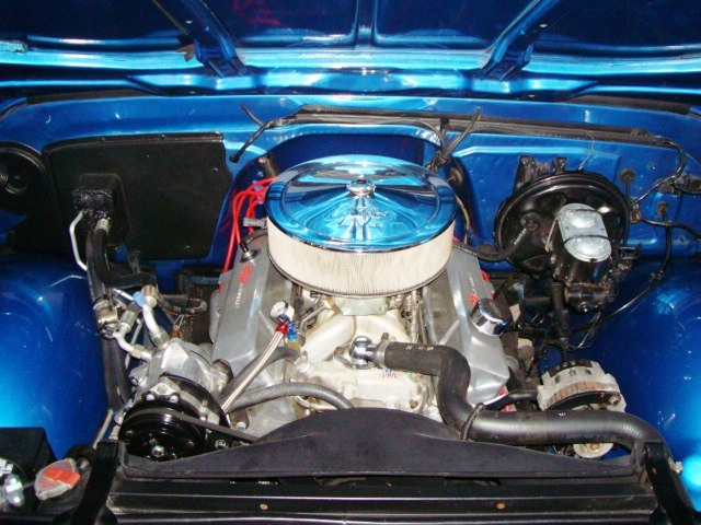The engine: 350 crate motor, performance cam, bored 30 over, Edelbrock highrise with Demon carburetor, ceramic headers with Flowmaster dual exhaust. Tweeked to 500 plus horsepower "Will shake the house".