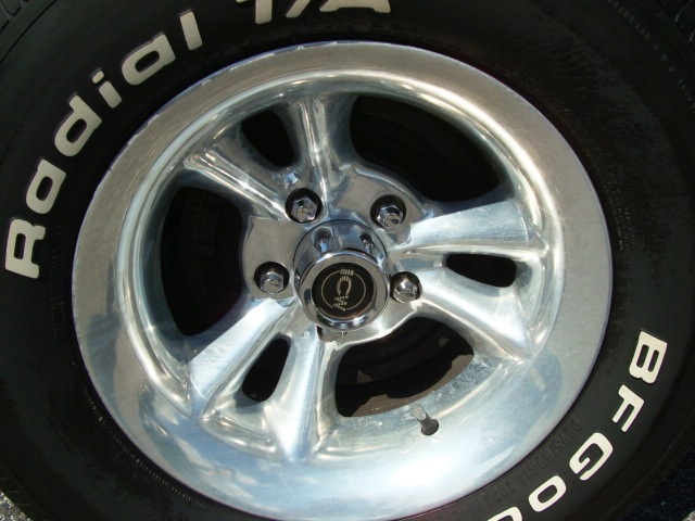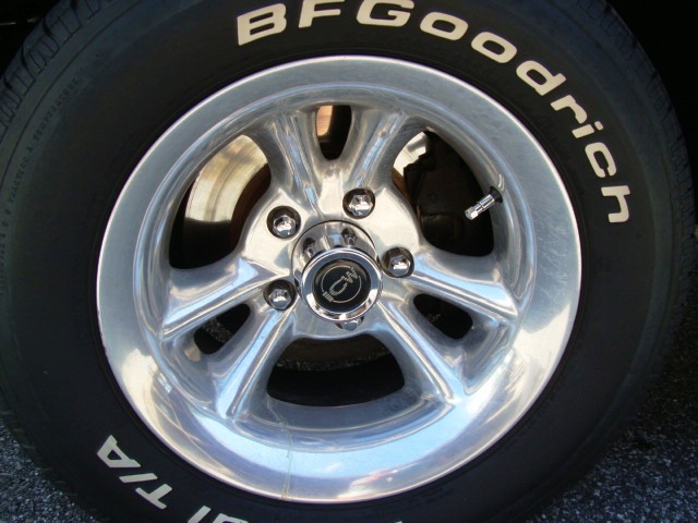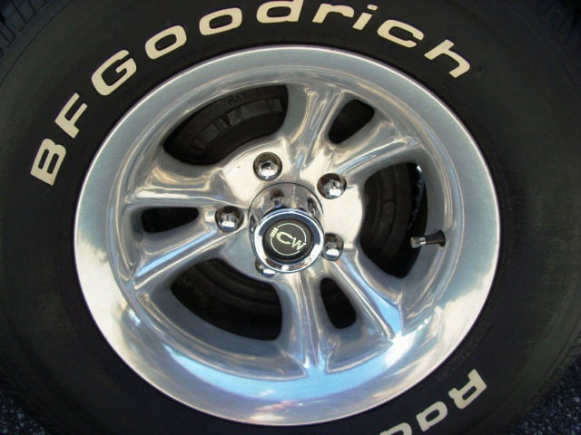 Custom alloy wheels and matching BF Goodrich TA radials. Drivers side front wheel and tire.
