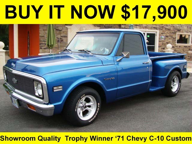 Enjoy life. Come to Florida and buy this beautiful completely restored 1971 Chevrolet C-10 Custom Stepside Pickup. Cruise around sunny Florida, enjoy the attractions, get a tan and save enough on this purchase to pay for your mini-vacation.