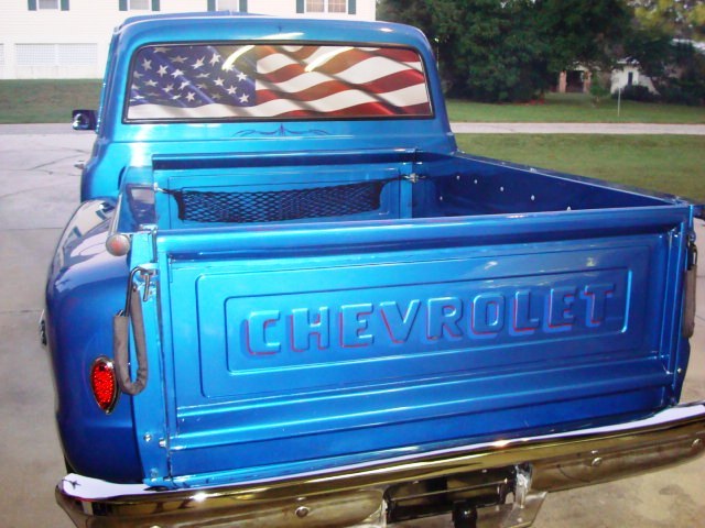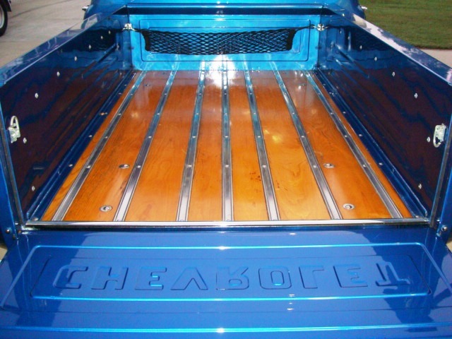Complete body off frame resoration. Engine, transmission and rear end rebuilt. Power brakes with new front disc brake kit installed. Professionally lowered with drop spindles. Ceramic headers with custom exhaust. Power steering with vintage air conditioning (will freeze you out of the cab). New steering column with tilt wheel. New fuel tank installed with custom fill location in fender. Custom interior includes California custom seat with center console armrest and built in cooler, new carpet and matching door panels with all new hardware. 200-watt CD sound system, amplifier with remote and 4 speakers with tweeters. Exerior paint finish is gorgeous, all new glass with new rubber seals and vent windows. Wood bed with stainless runners is exquisite. New front and rear chrome bumpers. Alloy wheels with matching BF Goodrich TA radials.