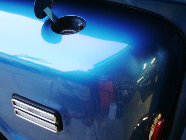 Custom built fuel cell with fuel filler built in the fender, really cool.
