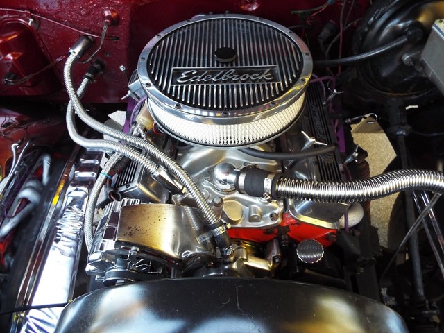 ***  STRONG 350 CID V8 CRATE MOTOR - LESS THAN 20,000 MILES ON THE MOTOR - MILD PERFORMANCE COMP CAM - EDELBROCK PERFORMANCE FOUR BARRELL ALUMINUM INTAKE MANIFOLD - EDELBROCK PERFORMANCE FOUR BARRELL CARB - CUSTOM HIGH FLOW HEADERS - EDELBROCK SCRIPTED VALVE COVERS - EDELBROCK CUSTOM AIR CLEANER HOUSING !!  ***