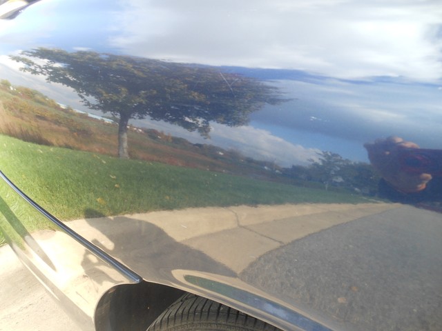This car has a clean title. Carfax shows three owners and history of very minor damage from a previous accident. This may or may not be true.
