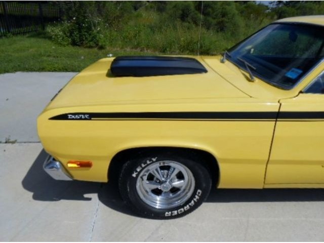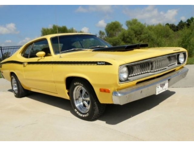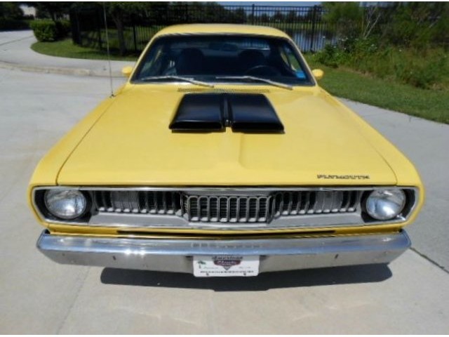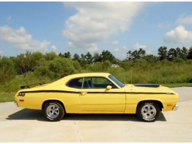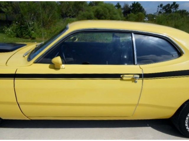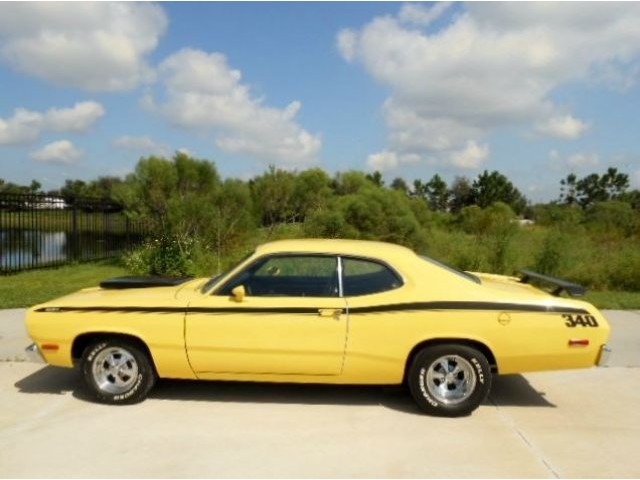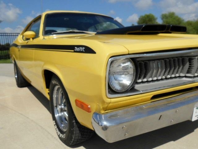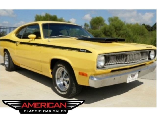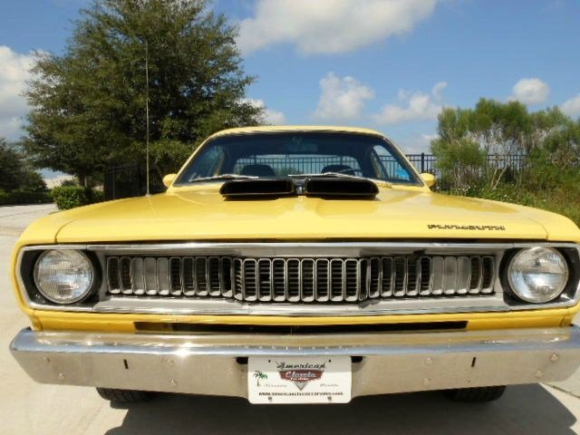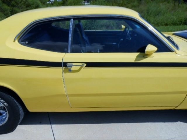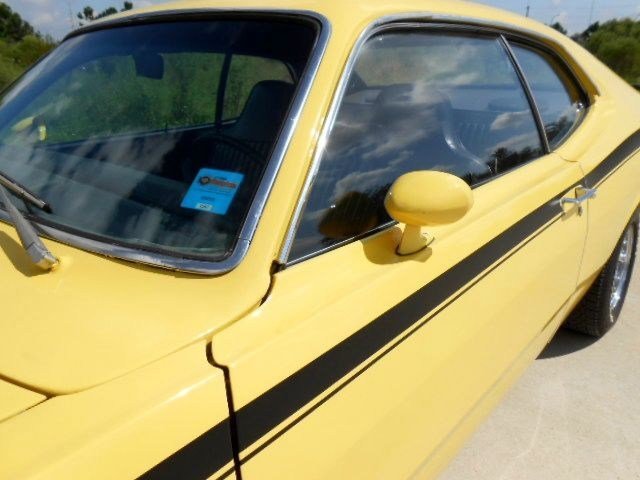 Jump out of the line up in this Incredibly clean 1972 Duster in bright lemon twist yellow with black stripes and a black interior. It's got a strong running, great sounding, hopped up 340 V-8 and an automatic transmission. . Super clean and rust free car. Show quality paint finish. Completely restored interior. Added gauge cluster. The wheels are very nice looking classic Crager S/S's. New tires. All original sheet metal including untouched floors, trunk and lower body sections. Fast and fun. No issues with this car, look at the bottom pcs and watch the video. Don't delay, this one has should everyone's hot button. Call for more details. www.americanclassiccarsales.com We ship and finance competitive rates.