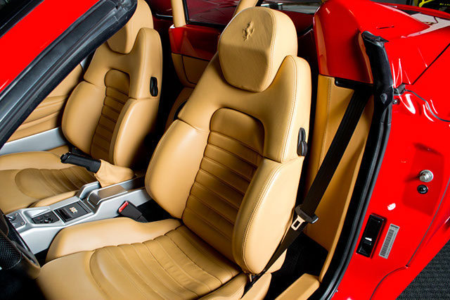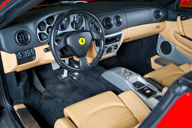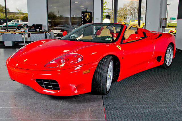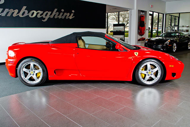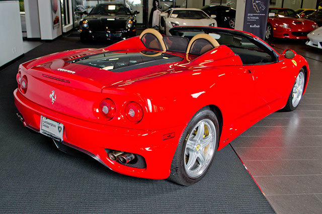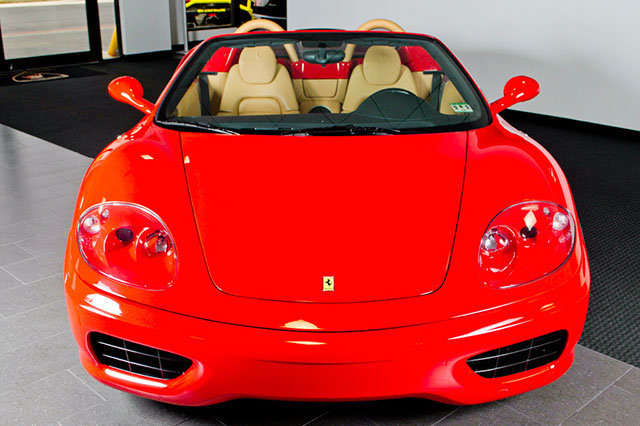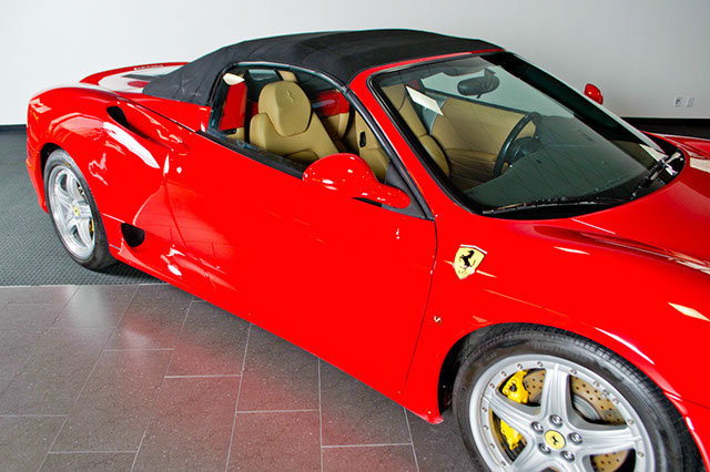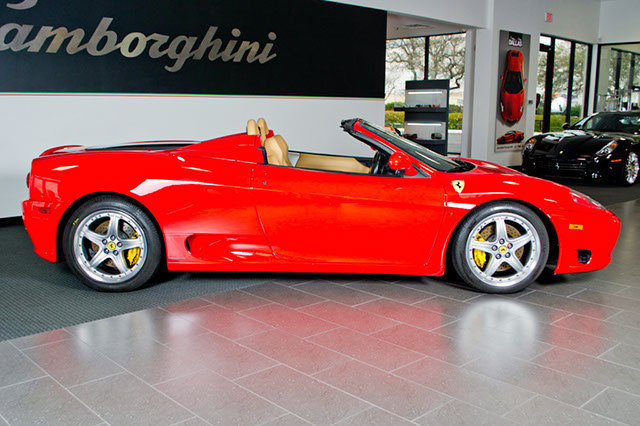 This is a Carfax certified 2005 Ferrari 360 Spider equipped with a 3.6L V8 engine and a 6-speed F1 transmission. This spider is finished in a beautiful Corsa Red exterior paint and finished in a Tan leather interior.