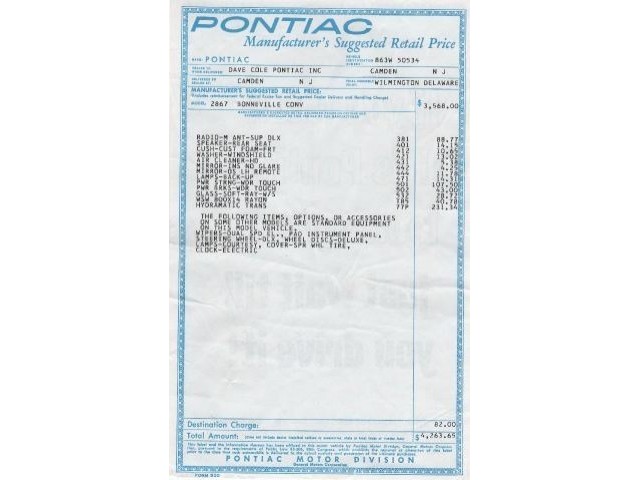 stampings or any other way someone may identify what a vehicle is equipped with currently or what it may have been equipped with in the past. Our knowledge is limited on many of the cars we sell. It is the buyer’s responsibility to verify the accuracy of the “Description” through personal or hired inspection service. We do not guarantee condition, originality or authenticity of parts, equipment,colors, equipment packages or documentation or any other item that is part of the vehicle or comes with the vehicle. By signing this form you agree to hold American Classic Car Sales harmless for any future responsibility in regards to condition of the vehicle or authenticity of options and/or equipment listed in the advertisement of the vehicle. Specialty Cars is not responsible for misprinted information.