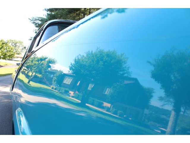 We will start off with the exterior of the Crown Vic. It has a solid body with good lines. When you look down the sides you can see it’s straight. Everything is covered in the Peacock Blue paint that is accented by the Colonial White. It shows very well and has been buffed and polished to a deep rich shine. All the stainless fits well and looks very good. All the glass is nice with the side glasses working as they should. The bumpers look new as well as other chrome. To keep with the stock look it has the factory style white wall tries and hub caps.