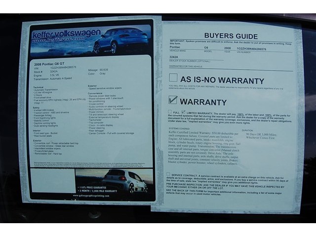 G6 GT Keffer Certified Certified 2D Convertible 3.5L V6 SPI VVT Adult Driven Carfax Certified Extended Warranty Available Keffer Certified Leather and Local Trade.