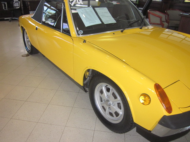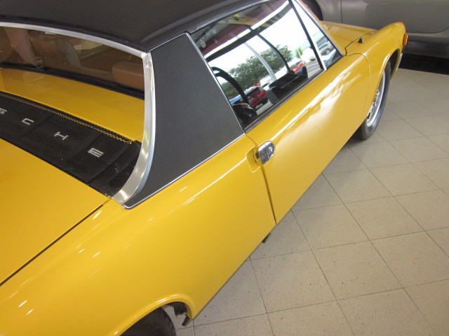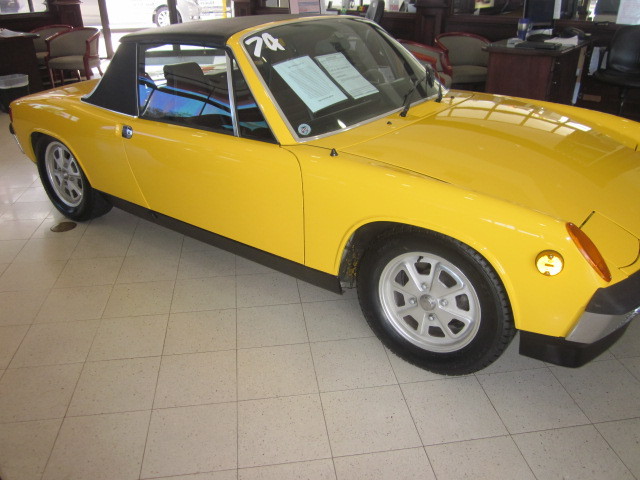 This 1974 Porsche 914 2.o is offered for sale after an 8 month cosmetic restoration that included a full exterior paint job in it's original sunflower yellow paint color (L13k color code), exterior rubber seals replaced (including all weather seals to the removable top), and the vinyl panels on the roll bars were replaced with originals.