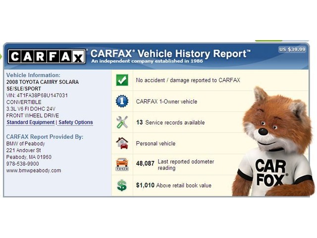 You are bidding on a one owner 2008 Toyota Solara convertible with 42,090 miles with a clean Carfax report.  This vehicle has low mileage for its year and is now looking for its second owner to enjoy.  Nicely equipped with options such as an automatic transmission, cloth seats, heated seats, cruise control, power mirrors, including many more.  Other than a few small scuffs on the bumpers shown in the pictures this car is clean and ready to be enjoyed with the top down! If this is the Toyota Solara you have been looking for call or email today to end the auction early.