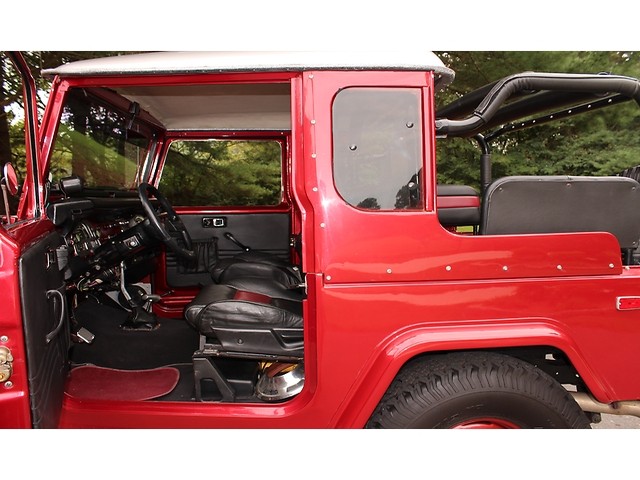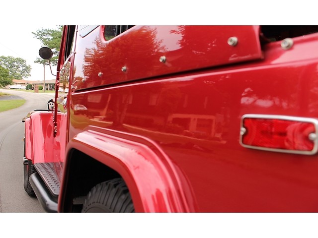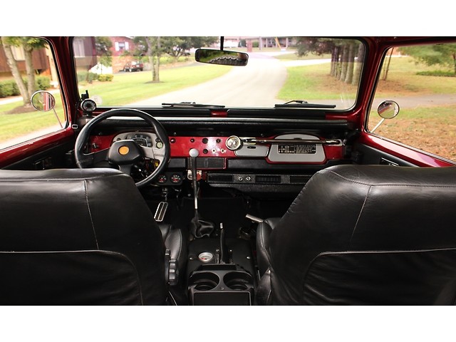 We will start off with the exterior of the Land Cruiser. The body had a lot of time spent on it and it can be see with the straight panels and good fit of the doors and hood. Also it had fender flairs added. The paint is Base Clear that we believe to be Fire Thorn Red Ply that is accented by a silver top and the black canvas top in the rear. It has a Warren Winch that’s mounted to a custom front bumpers. All the badges look to be new. The final exterior touch is the set of BFG 33-950-15 Tires with the stock hub Caps.