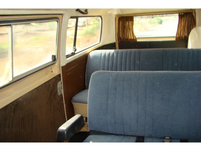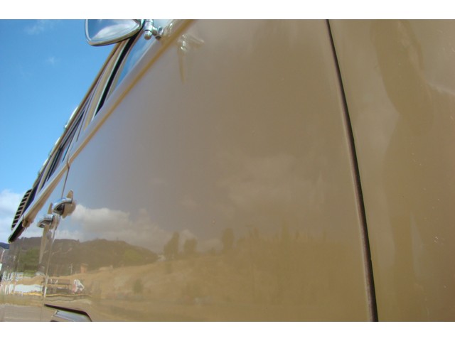 Exterior.......This Bus is eye catching. It was repainted VW COLOR MEXICO beige. All exterior fixtures and windows were removed before paint. Bumpers were PAINTED WHITE. Wheel rims were painted to match the bumpers. There are new rubber seals for front windshield, rear window and SLIDING WINDOWS.