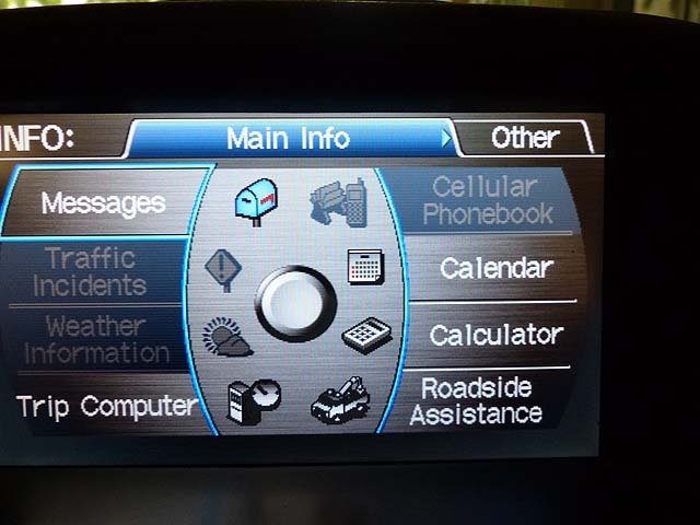 The large screen in the center of the dash shows navigation system maps and info (including Points of Interest), audio system settings, a calendar, calculator, trip computer and more. Many functions are also voice activated. A smaller display at the top of the dash shows climate control status, audio source and a clock.