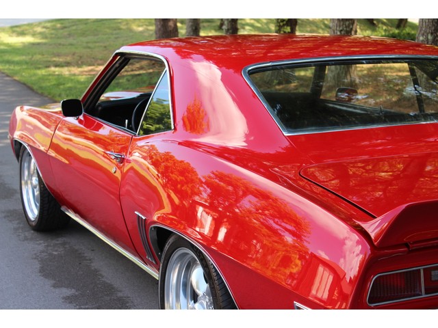 Up for sale we have a 1969 Chevy Camaro. This is a great driver with an arrow straight body and slick red paint. It sports a ton of eye appeal and really stands out in a crowd due to the solid color all over. In the paragraphs to follow we will give you a brief description of the exterior, interior, and heartbeat of the Chevy, but first we would like to tell you a little about us.