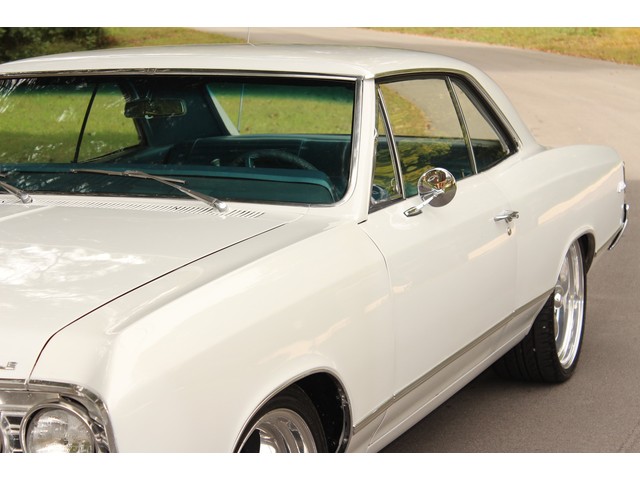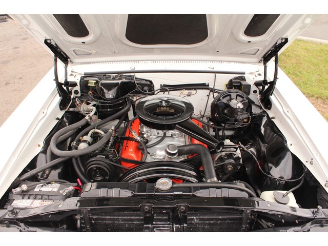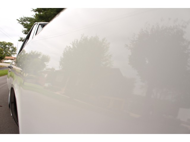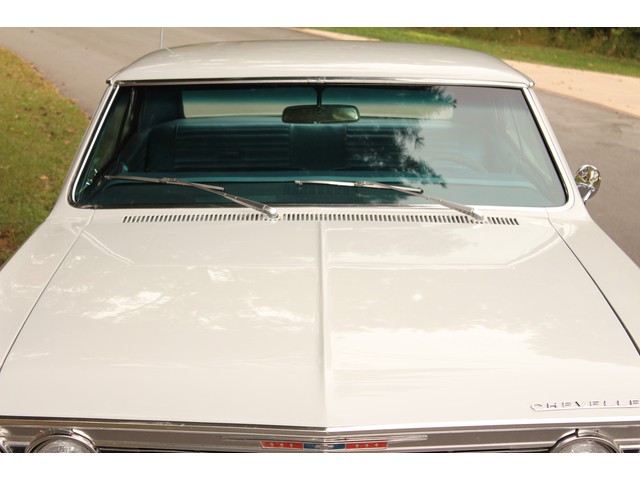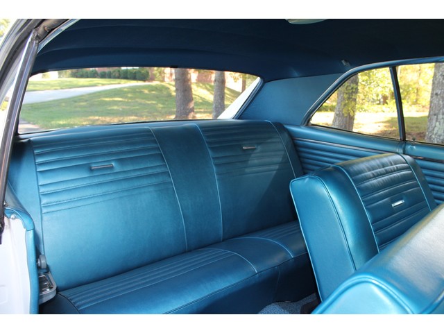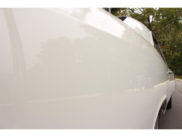We will start off with the exterior of the Chevelle. When you look down the side it’s solid and straight as an arrow. The fit of the panels is very good with good lines. Everything is covered in the slick White paint that has deep rich shine. The bumpers as well as other chrome was replaced. New weather stripping along with window felt was installed. All the glass in this car is good and the stainless is in great shape. The final exterior touch is the set of 18” and 20” American Racing Wheels and New Tires.
