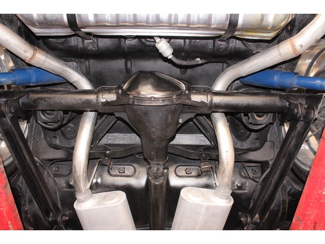 Finally, we will take a look at the heartbeat of the Chevy. Under the hood it has a 327 V8 that is mated to an Automatic Trans and 10 Bolt Rear End. It has been dressed with an Aluminum Intake and Edelbrock Carb. Other than that it looks stock and appears to have new wiring. This beauty comes with Power Steering, Power Brakes, and Working Factory AC. The bottom looks every bit as solid as the top with good floor and frames.
