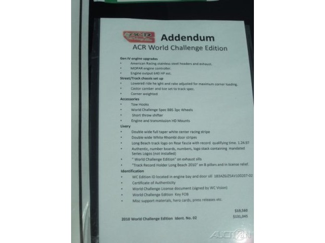 2010 DODGE VIPER SRT10 COUPE ACR WORLD CHALLENGE EDITION WITH LEATHER