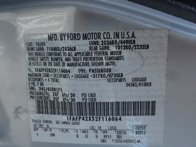 • VIN: 1FAFP42X52F116064