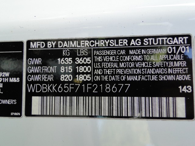 2001 MERCEDES-BENZ SLK320 CONVERTIBLE