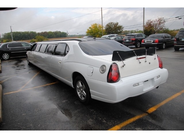 L4243: 2005 CHEVROLET MONTE CARLO LIMOUSINE 140" STRETCH RACING EDITION, FRONT PASSENGER SEAT, WHITE EXTERIOR, BLACK RACING TOP WITH NUMBER 38, BLACK AND GRAY TWO TONE 3 SEAT INTERIOR, BLACK CARPET, MIRRORED FIBER OPTIC CEILING, L.E.D. COACH LIGHTS, FIBER OPTIC FLOOR LIGHTS, AWESOME BAR CENTER WITH MIRRORED FIEBR OPTIC BACK DROP AND TRIM LIGHTS, 4 FLAT SCREEN COLOR MONITORS, AM/FM STEREO, CD/DVD PLAYER, OVERHEAD CONTROL PANEL WITH CLIMATE OPTION, EXTRMELY RARE AND UNBELIVABLE LIMOUSINE, AUTOGRAPHS FROM DRIVERS ON GLOVE BOX INCLUDING MICHAEL WALTRIP, ICE CHESTS, CHAMPAGNE WELL, CRYSTAL ROCKS AND FLUTES, ONLY 77,688 MILES There is no damage evident on this vehicle.The engine on this vehicle is running properly.This vehicle has no known defects.The mileage represented on this vehicle is accurate.This vehicle has a smooth shifting transmission.All power equipment is functioning properly.Overall, this vehicle's exterior is clean.The interior is clean and in good condition.There is approximately 75% of the tire tread remaining.If you have any questions about this or any of my other auctions please feel free to contact me via e-mail or you can call me at (937) 898-9000. Thank you for your interest and I look forward to hearing from you.