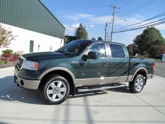 With only one previous owner, this LUXURY 2006 FORD F 150 CREW CAB 4x4 LARIAT   is ready for you.This is a smoke-free automobile.There is no damage evident on this vehicle.This is a garage kept vehicle.The engine on this truck is running properly.This vehicle has no known defects.The mileage represented on this vehicle is accurate.There are no signs of prior damage on this vehicle.This vehicle has a smooth shifting transmission.All power equipment is functioning properly.The exterior of this vehicle is extra clean.Extra clean interior. Absolutely no rips, odors or abuse.There is approximately 75% of the tire tread remaining.