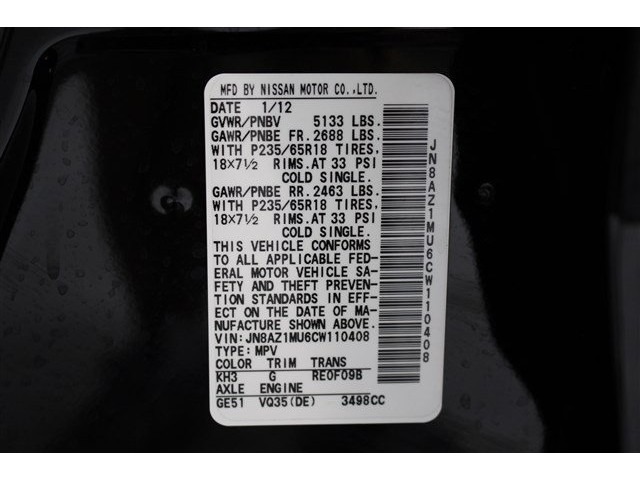 • VIN: JN8AZ1MU6CW110408