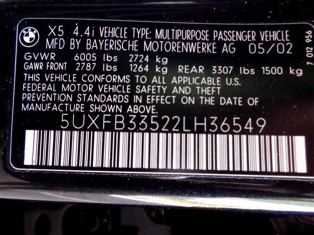 Vehicle: 2002 BMW X5 (5UXFB33522LH36549)
