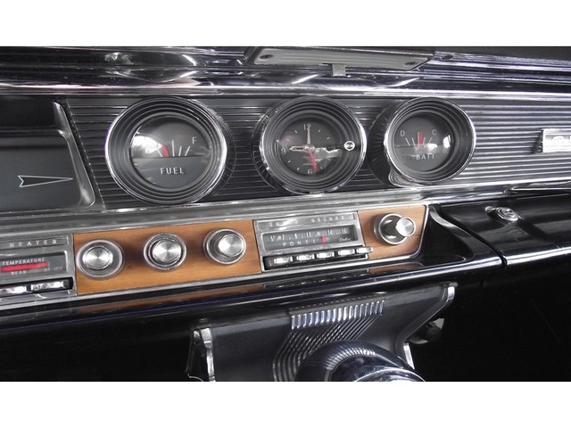 It still retains its VERY STRONG - ORIGINAL - correctly Coded - code "25K" - 389 CID V8 4-BBL motor with 303HP and it runs GREAT. The Original Air Cleaner housing and OEM valve covers are still on the engine. The engine is backed by a smooth Three speed - automatic transmission with factory console floor shifter which also functions like new. The ORIGINAL - Code "268" - Black imitation leather interior is what I would call PRISTINE, shows very little to no wear and still smells like new with a VERY NICE ORIGINAL Black imitation leather front Bucket seats, VERY NICE ORIGINAL Black imitation leather rear seat, VERY NICE ORIGINAL dash with REAL wood panels, VERY NICE ORIGINAL gauge cluster's the working Original performance Vacuum Gauge mounted on the center console, PERFECT ORIGINAL Black padded dash pad with NO CRACKS, VERY NICE Custom Sports steering wheel, VERY NICE ORIGINAL matching Black door panels, NICE ORIGINAL Black carpeting, VERY NICE ORIGINAL sunvisors with a FACTORY ORIGINAL ACCESSORIE vanity mirror on the passenger side and a VERY NICE ORIGINAL headliner with the correct little stars in it. All the interior window trim chrome is very nice. In my opinion your not going to find a nicer ORIGINAL interior on a 49 year old car than the one in this Sweetheart !! The only blem on the interior is on the driver's armrest and even that is pretty nice. This Beauty is quite a deal and you will be happy with your purchase. This '64 has outstanding looks, smooth power and a SUPERB RIDE ! These vehicles have an appreciative group of owners any of which would be pleased to own this one for sure. The suspension is in nice working order as well as the electrical system. This BEAUTY is a pleasure to drive and I assure you it runs and drives very well ! This Pontiac Grand Prix Two Door Sport Coupe is a good investment opportunity and it is priced right ! This vehicle is in FANTASTIC condition from top to bottom and from front to back. Again, THIS IS A QUALITY VEHICLE - possibly the nicest in existence!! It will not disappoint someone looking for a good example of a sought after and hard to find Classic Pontiac survivor Car. If you have been looking but can not find a nice Classic Pontiac Grand Prix Two Door Sport Coupe worthy of your hard earned money look NO further because this is the one !