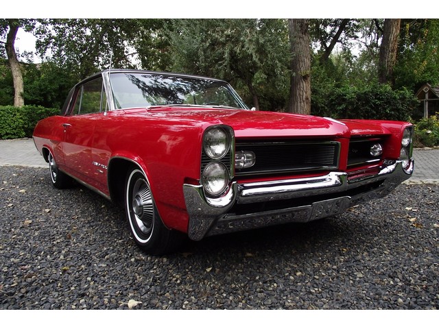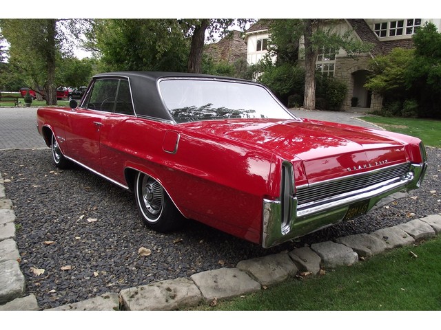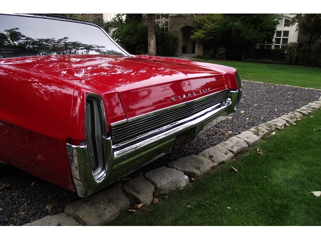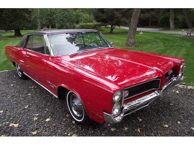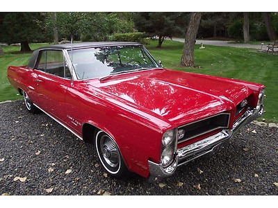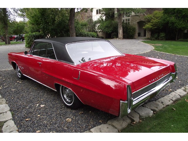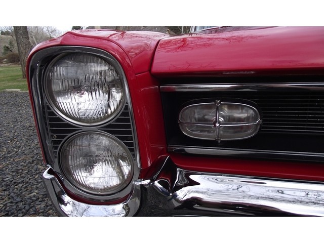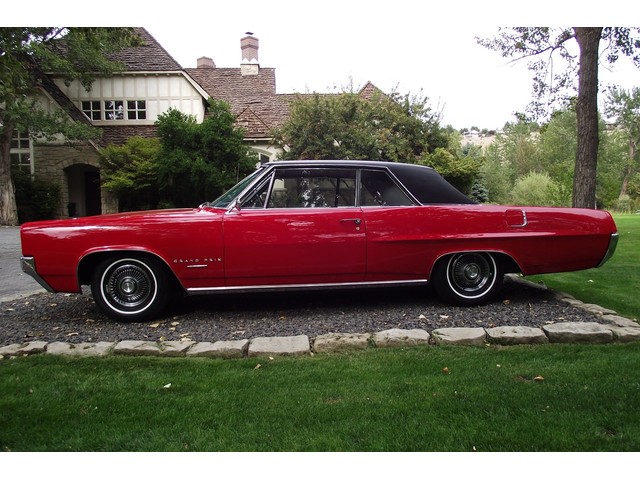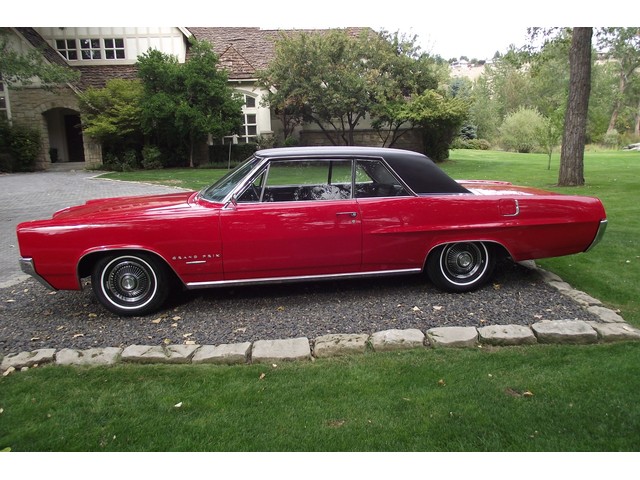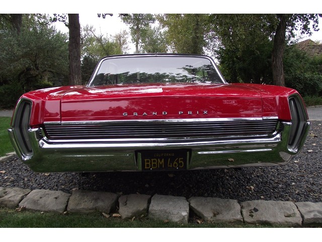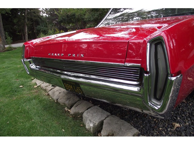 The - Code "V" - Grenadier Red new exterior finish on this vehicle is EYE POPPING BEAUTIFUL showing a few small imperfections but is a cut and buffed basecoat / clearcoat paint job that is STUNNING as you can clearly see in the 100 pictures below !! The Original Black interior is also BEAUTIFUL !! what a GORGEOUS color combination !! How could you get any better !!? Also look at the pictures of the ORIGINAL TRUNK in this car and check out the picture of the Dunlop bias ply spare tire which appears to be the ORIGINAL SPARE TIRE, UNBELIEVABLE !! probably has 1964 air in it !! The trunk also contained the ORIGINAL trunk mat (shown in pieces), ORIGINAL jack, ORIGINAL lug wrench and the ORIGINAL tire cover and neat accessory, the removable trunk light and it works, TO COOL !! This car is loaded with equipment / options / accessories and has all the options you expect on this top of the line Sport Coupe including power steering, Code "502" - WONDER TOUCH - FACTORY POWER BRAKES, original deluxe push button radio with front and rear speakers with crossover switch(All working), lamp and mirror decor group, dual speed windshield wipers, factory back up lights, custom sports steering wheel, in beautiful Original shape, padded dash (no cracks or fading), original day / night rear view mirror, good heater and defroster and chrome exterior mirror !! This car is ready to go and EVERYTHING WORKS!! It is in WONDERFUL mechanical condition and it runs and drives Great. I was driving it down the freeway at 65-70 MPH with one finger on the steering wheel and thinking how awesome this car drives compaired to any car of any age. This vehicle is beautiful with respect to the overall cosmetic impression. Check out the ORIGINAL chrome and stainless on this Grand Prix. In my opinion your not going to find much nicer ORIGINAL chrome and stainless than what’s on this car !! It does not get much better !! The Re-Chromed, Triple show chrome front and rear bumpers are BEAUTIFUL and ORIGINAL stainless steel grill is nearly like new !! It has BEAUTIFUL - Pontiac Wheel Covers and brand new Whitewall steelbelted radial tires. I looked underneath and also included photos below. This is a NICE - SOLID - PAMPERED - LOW MILEAGE vehicle that was kept inside and it shows. Look at the pictures of the ORIGINAL FLOORS, in my opinion your not going to find any better !! All of the ORIGINAL rubber weather-stripping is still in good condition for being original !! It has been lovingly owned and pampered all its life!! Please pay close attention to the picture above and the 100 ADDITIONAL PICTURES BELOW and this description as they will answer most if not all of your questions. If you need to speak to me my name is Rob and my phone number is (208) 860-1171 or you can email if you prefer. As always I tried to get as thorough and in depth with the photographs as possible.