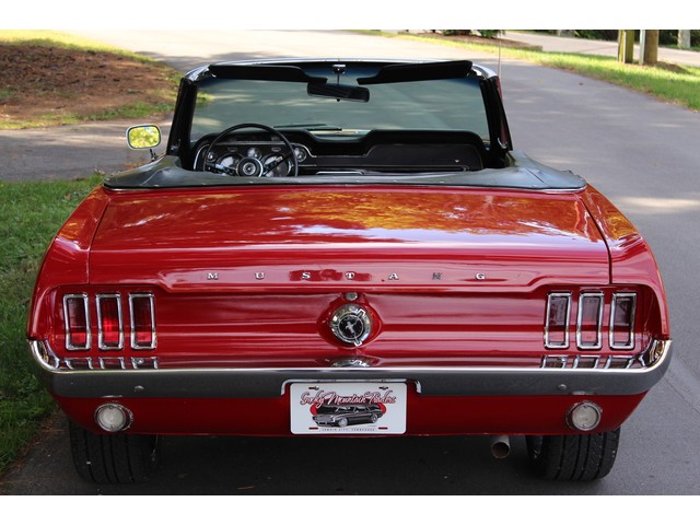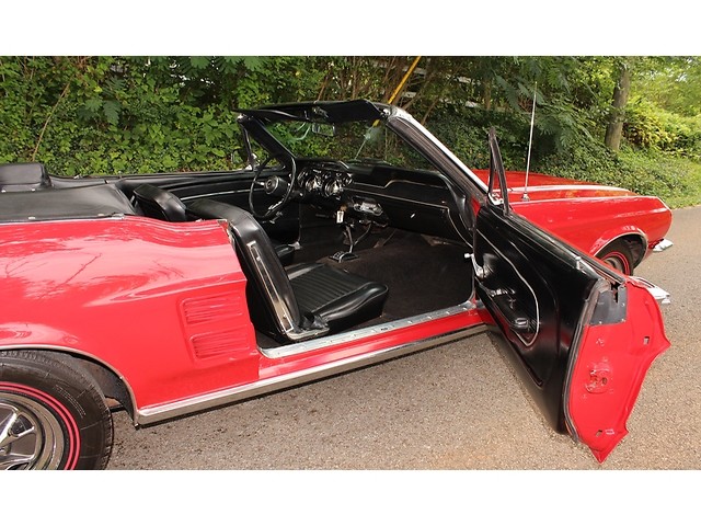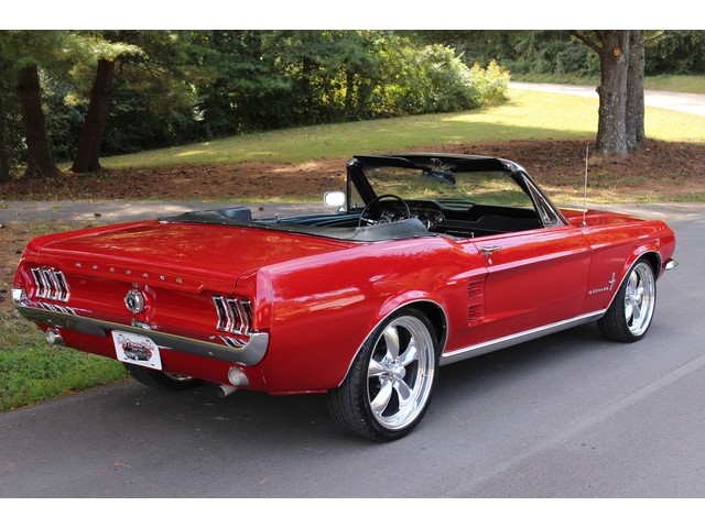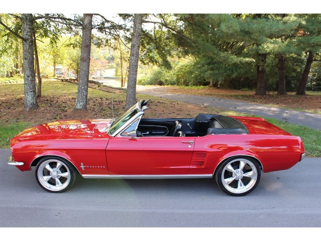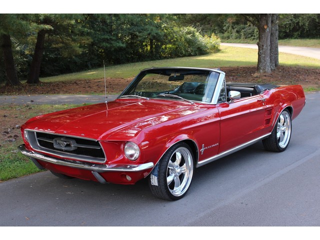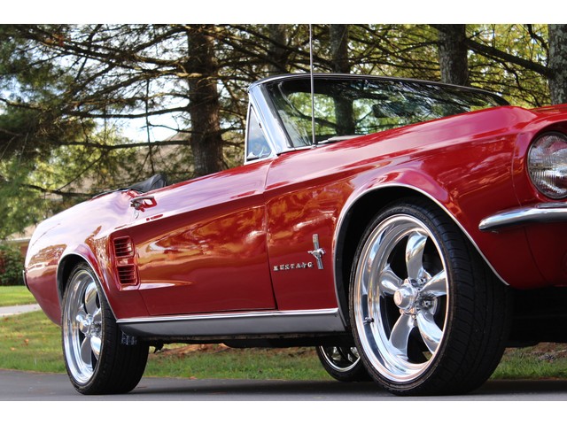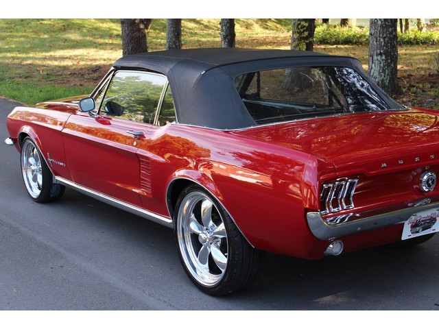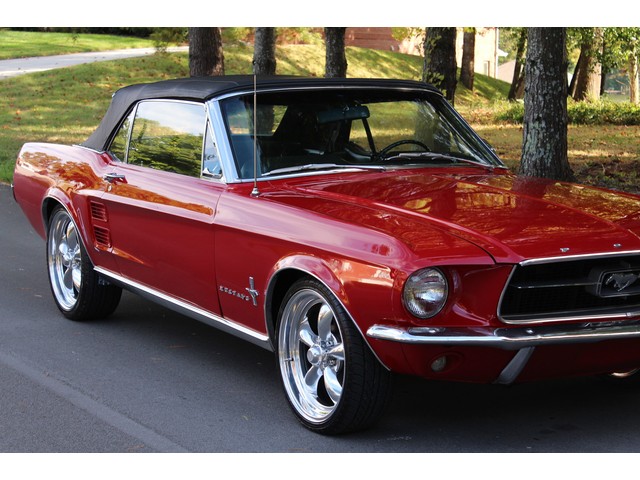 Up for sale we have 1967 Ford Mustang Convertible. In ’67 Ford changed the look of the Mustang with a new grill, side body lines, and tail lights. They also changed the dash with a new instrument panel. The one we have for you is done in the gorgeous Candyapple Red Paint that is accented by the Black Power Top and Black interior. In the paragraphs to follow we will give a brief description of the exterior, interior, and driveline of the Ford, but first we would like to tell you a little about us.