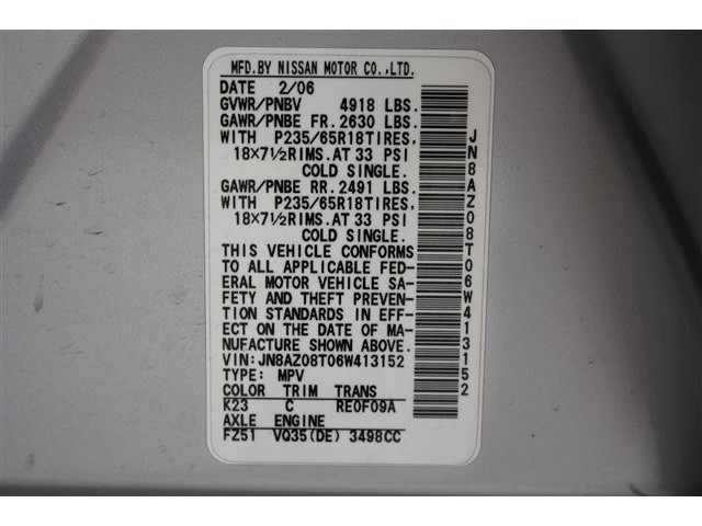Want to stretch your purchasing power? Well take a look at this handsome 2006 Nissan Murano. J.D. Power and Associates gave the 2006 Murano 4 out of 5 Power Circles for Overall Performance and Design. It is nicely equipped with features such as SL Leather Package (4-Way Power Front Passenger's Seat, Power Adjustable Pedals, and Premium Package), SL Leather Package w/Sunroof, Sunroof Package (Power Glass Sliding Sunroof w/Pre-Select Switch), Murano SL, 4D Sport Utility, CVT with Xtronic, Brilliant Silver Metallic, Cafe Latte w/Leather-Appointed Seat Trim, 4-Wheel Disc Brakes, 4-Wheel Independent Regular Ride Suspension, 5.173 Axle Ratio, 6 Speakers, ABS brakes, Air Conditioning, Alloy wheels, AM/FM CD Audio System, AM/FM radio, Anti-whiplash front head restraints, Auto-dimming Rear-View mirror, Automatic temperature control, Bumpers: body-color, CD player, Delay-off headlights, Driver vanity mirror, Dual front impact airbags, Dual front side impact airbags, Four wheel independent suspension, Front Bucket Seats, Front Center Armrest w/Storage, Front Cupholders, Front dual zone A/C, Front fog lights, Front reading lights, Fully automatic headlights, Garage door transmitter: HomeLink, Heated Front Seats, Illuminated entry, Leather Shift Knob, Leather-Appointed Seat Trim, MP3 decoder, Occupant sensing airbag, Outside temperature display, Overhead airbag, Panic alarm, Passenger door bin, Passenger vanity mirror, Power door mirrors, Power driver seat, Power windows, Rear reading lights, Rear seat center armrest, Rear window defroster, Rear window wiper, Reclining Front Bucket Seats, Remote keyless entry, Reverse sensing system, Security system, Speed control, Speed-sensing steering, Split folding rear seat, Steering wheel mounted audio controls, Tachometer, Tilt steering wheel, and Variably intermittent wipers. This fantastic Murano will pamper you in refined comfort, plus it has power and safety to spare.