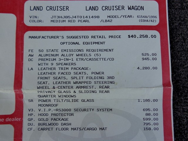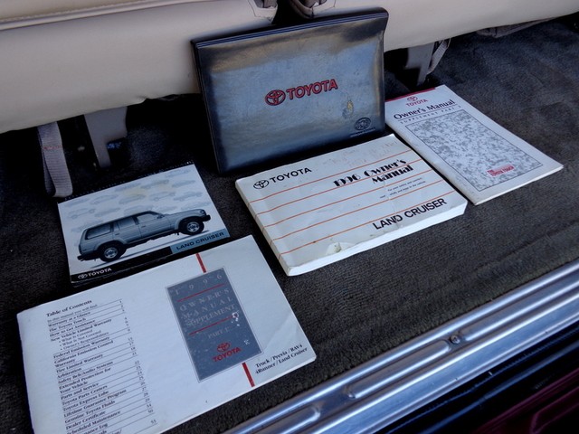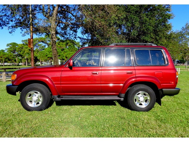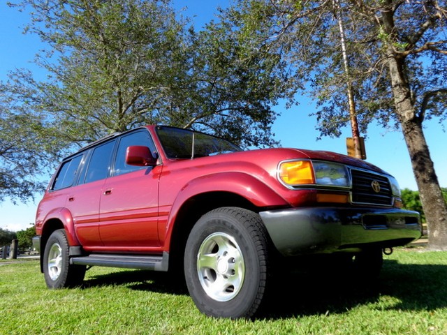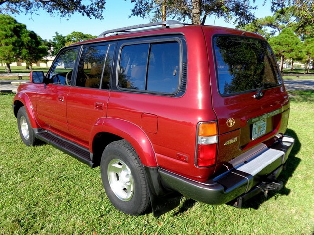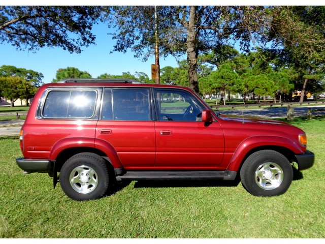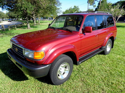 Hello and thanks for stopping by our, "No Reserve", auction for this, exceptional, low original mileage for its year, 2-owner, clean Carfax history, well maintained, 1996 Toyota Land Cruiser full-time 4WD wagon! Oh-so-smooth, in fact, she drives beautifully and yields an excellent highway ride. This Land Cruiser has been inspected, serviced and has been totally gone through, no issues, ready to go. Well serviced throughout her life as you can see in the Carfax vehicle history report we have provided below. According to Carfax, she is $790 above retail book value! I must say this SUV's shifts are smooth from the 4-speed automatic transmission, never hard shifting and the, 4.5L engine is powerful, has a strong feel and is reliable! A thoroughly capable SUV that is solid and sturdy. The "Medium Red Pearl" exterior shines like the Florida sun! Looks really great for her year! The "Beige" leather interior is in amazingly good condition for a 96' vehicle, just look at it!! Seating is comfortable and supportive front and rear. Rear seating area can be turned into a large convenient cargo area by folding and flipping the seats! Abundant storage possibilities! Air conditioning is ice cold too. She features, leather trim package, 3rd row seating, power sunroof that works great, rear door child locks, Draw Tite receiver hitch, power driver and passenger front seats, driver seat power lumbar, 4-speed ECT transmission, good condition tires, 16" alloy wheels, 4.5L, 6-cylinder engine, third row seats conviently fold up the sides, folding and flip-forward second row, rear heat, interior fuel release, running boards, tinted glass, owner's manual, rear wiper, rear defogger, spare tire, jack, tilt leather steering wheel, roof rack, power windows, locks, mirrors, cruise control, CD player, 4-wheel ABS, front air bags, splash guards, power antenna, Gold Package, sliding rear quarter windows, split open rear gate, cassette player, clean Carfax history and more! Refined drive train, surprisingly agile handling, versatile and comfortable interior and Toyota's reputation for reliability. Take a look, we think you will agree. All of our vehicles are free from any and all liens. You will receive a clean title. We also use our detailed pictures as a physical description so look at them all. Pre-sale inspections are welcomed and encouraged. Read our "terms and conditions" below. Please do not assume anything. If you have any questions about this or any of my other auctions or would like a "buy it now" price through eBay, please feel free to contact me, Avi Fraser, via email at bestofflorida@rollingwheelsinc.com or you can call me, in the office, at 954-527-5522 and I will be happy to help you. We are always willing to negotiate and 4 SURE, WE WILL MAKE A DEAL WITH YOU! Thank you for your interest and I look forward to hearing from you! Visit our location at Rolling Wheels 125 E. Sunrise Blvd. Ft. Lauderdale, Fl. 33304. We are open, M-F, 9am-5pm. Saturday, 9am-4pm. Closed Sunday and holidays.