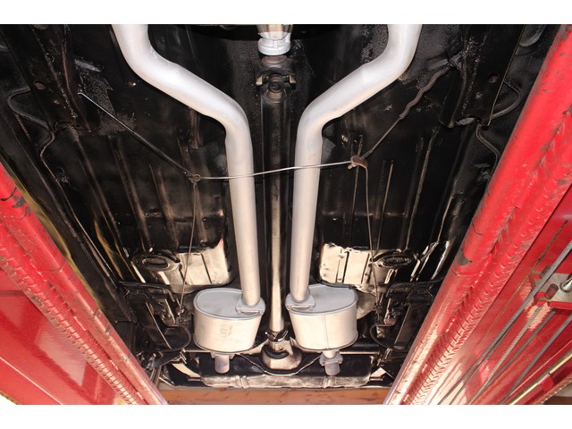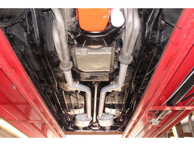 Finally, we will take a look at the heartbeat of the Chevy. Under the hood it has a 350 V8 that is mated to a 350 Turbo Trans and a 10 Bolt Rear End. It comes with an Aluminum intake and a Holley Carb as well as chrome valve covers and breather. Also, it has been fitted with headers and turbo mufflers. This Camaro has Power Steering and power Disc Brakes. The bottom of this Camaro has had pans repaired in which they did a nice job.