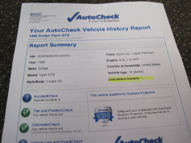 FANTASTIC 1998 DODGE VIPER GTS COUPE, 1 OWNER SOUTH FL. CAR PAMPERED FROM NEW!