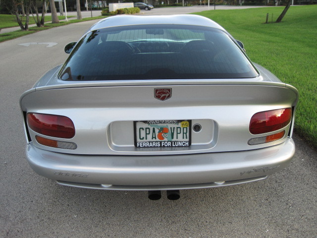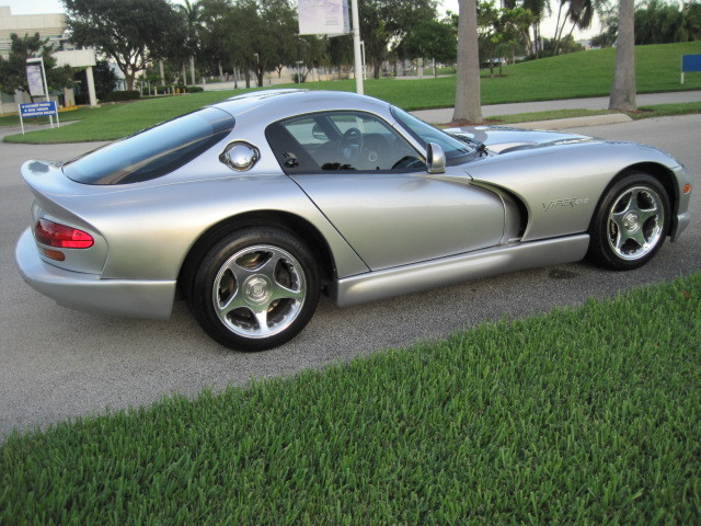WE ARE PROUD TO OFFER THIS 1998 DODGE VIPER GTS COUPE FOR AUCTION HERE ON EBAY. THIS PARTICULAR EXAMPLE IS A ONE OWNER CAR, PURCHASED NEW HERE IN SOUTH FLORIDA. IT HAS ALWAYS BEEN GARAGE KEPT WHEN NOT IN USE AND WELL MAINTAINED, BUT ALSO USED REGULARLY AND ENJOYED THRU-OUT THE YEARS. THE OVERALL CONDITION IS EXCELLENT WITH A SUPERB PAINT FINISH CONTRASTING NICELY WITH THE ORIGINAL BLACK LEATHER INTERIOR. THE VEHICLE IS COMPLETLY STOCK WITH NO MODIFICATIONS WHICH IS A REFRESHING FIND ON THESE PARTICULAR VEHICLES. THE ONLY EXCEPTION BEING A PERIOD CORRECT ALPINE C.D. PLAYER WAS INSTALLED. THESE SECOND GENERATION VIPER'S REALLY CAPTURE THE ORIGINAL INTENT OF THE DESIGN OBJECTIVE AND WERE VASTLY IMPROVED OVER THE FIRST GENERATION BOTH VISUALLY AND MECHANICALLY. PERFORMANCE NUMBERS ARE WORLD CLASS O-60 MPH IN 4.0 SECONDS WITH A TOP SPEED OF 185 MPH AND THE 1/4 MILE TRAVELED IN 12.2 @ 119 MPH. NEEDLESS TO SAY THIS CAR IS EXTREMLY FUN TO DRIVE AND FAST BUT ALSO CAN BE USED AS A DAILY DRIVER WITH MODERN COMFORTS SUCH AS POWER WINDOWS, AIR CONDITIONING AND DUAL AIR BAGS GIVING A CIVILIZED COCKPIT. ON THE ROAD THIS VEHICLE FULLY LIVES UP TO IT'S SPECS. THE SUSPENSION IS FIRM BUT NOT HARSH AND THE EXHAUST NOTE IS SUPRISINGLY SUBDUED AND NOT DROANING OR ANNOYING ON THE HIGHWAY. THE STEERING IS TIGHT AND PRECISE AND THE CAR TRACKS STRAIGHT WITH NO PULLING OR VIBRATIONS. THE ENGINE PERFORMS AS NEW WITH A SMOOTH SHIFTING SIX SPEED MANUAL GEARBOX AND GOOD CLUTCH. EVERYTHING WORKS CORRECTLY AND IS FACTORY CORRECT. THE A/C BLOW'S COLD. THIS CAR SHARED GARAGE SPACE WITH A PLYMOUTH PROWLER BUT WAS BY FAR THE FAVORITE CHOICE AND MOST USED BY THE OWNER FOR HIS DAILY COMMUTE AND WEEKEND GET AWAY'S. TO SUM UP THIS IS A TERIFFIC EXAMPLE OF A SECOND GENERATION VIPER IN STOCK CONDITION AND IS READY FOR WORK OR PLAY. YOU WILL TRULY NOT BE DISSAPOINTED WITH THE LOOK AND FEEL OF THIS SUPER CAR, IT IS A VERY SPECIAL EXAMPLE. GOOD LUCK AND HAPPY BIDDING.