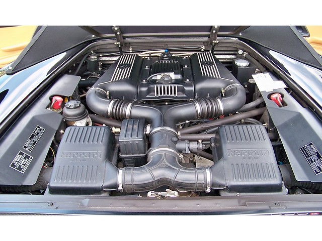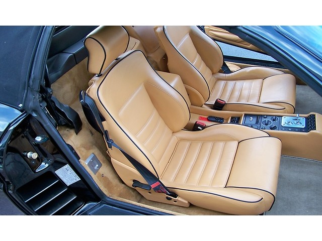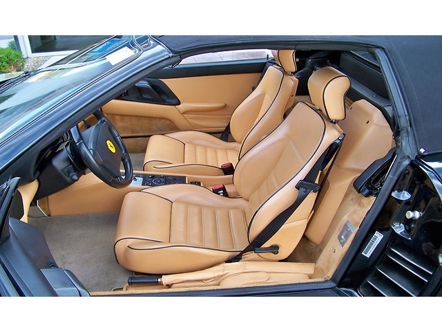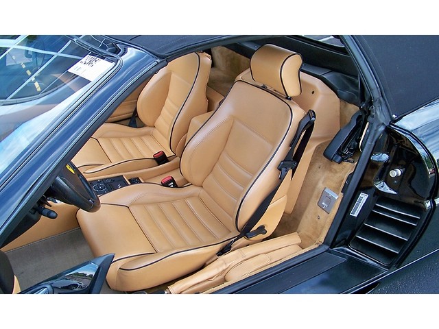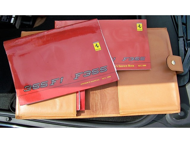 An embroidered Ferrari red car cover, black leather boot cover and tan leather satchel are in the trunk. The black convertible top is in excellent condition. No tears or snags. Interior condition is in very goodcondition. The drivers side seat bolster does show some signs of wear and tear. All electronic components work as they should. Aftermarket stereo system. The exterior is in very good condition. No scratches, dent or dings. The options are; black rear challenge grid, Scuderia Ferrari shields and interior seat piping.
