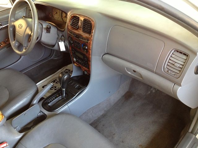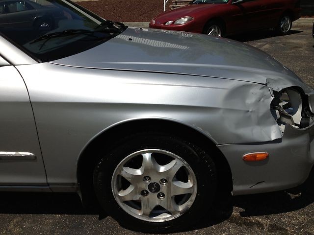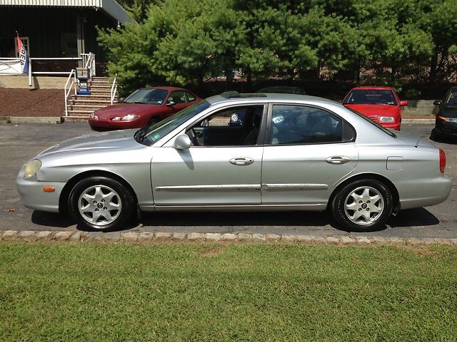 We are offering this nice NO RESERVE! 2000 HYUNDAI SONATA GLS V-6 SEDAN! This will be a cheap vehicle to purchase, fix and maintain. It is not perfect, but for the low price it will be a great deal! It is loaded with equipment like power windows, door locks, adjustable wheel, AM-FM stereo with Cassette and CD player, POWER tilt and slide sunroof with shade, power driver’s seat, side impact airbags, heat and air conditioning which I am afraid has a slight leak in it, but because we are coming into fall I would wait until next year to put sealer in it. It also has cruise control, delay wipers, rear window defogger, remote trunk and gas cap and much more! This car comes with the spunky yet thrifty 2.5 Litre V-6 engine, it has some small oil leaks and smokes a bit when you first start it, but other than that it runs great! There is not a check engine light on in this car! There is an air bag light on but I suspect that has something to do with the right front, and is probably a cheap sensor of some sort. The 4 speed automatic transmission shifts nice and smoothly. The power brakes work great and stop this car quickly, safely and in a straight line! The silver paint is clean and shiny, and the body is decent with the exception of the right front corner, it will need a fender and head light assembly to be perfect! The leather seats are nice with only a little bit of wear and tear. The rest of the interior is also decent and clean. The front tires appear to have around 55-60% tread left and the rear tires appear to have around 80% of the tread left and they are all mounted on the nice factory aluminum alloy wheels. This car even comes with a New Jersey State Inspection Sticker valid through July of 2014! Whoever ends up with this car will be getting a great deal because all of those little defects that I have noted in this description will save you money!