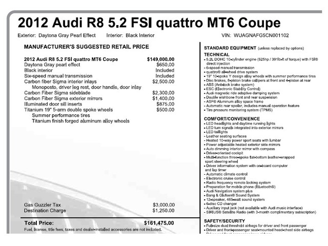 This 2012 Audi R8 5.2 might as well be called new - we have it displayed in our showroom currently.  With only 1,122 miles, it has not even been broken in yet.