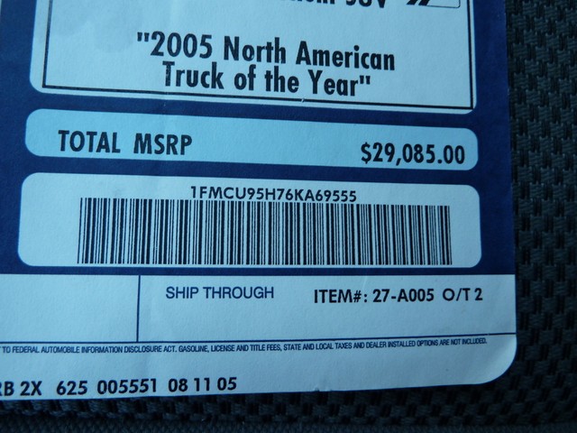 • VIN: 1FMCU95H76KA69555
